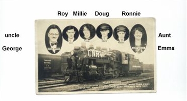 When the kids were in their teens they went for a train ride on the CNRV Canadian National Railway they sent Agnes picture postcard on the train but there is no date.